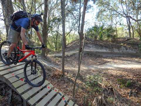 I have never ridden trails like this. The technical riding was combination of narrow ridge line, rocky terrain, bridges over swamp, and constant ups and downs through a completely different landscape then I’ve ever ridden through. It turns out the interesting terrain is due to the fact that it used to be an old Phosphate mine site. These trails are crazy and definitely worth checking out if you come to Florida. Bayou swamp mountain biking at it’s best.